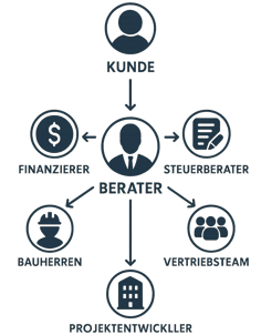 einem umfassenden Netzwerk aus geprüften Bauträgern, Finanzierern und Dienstleistern.